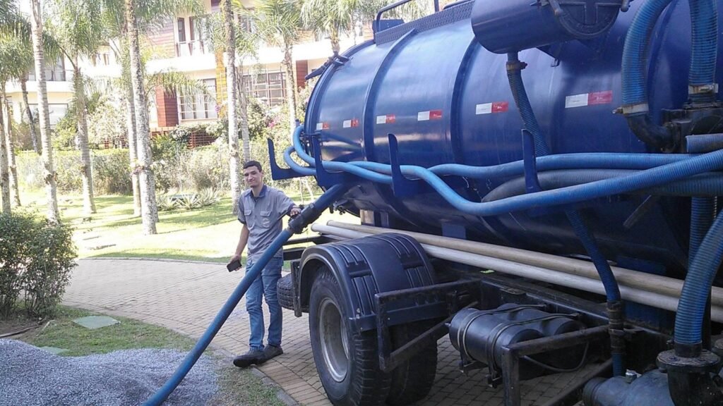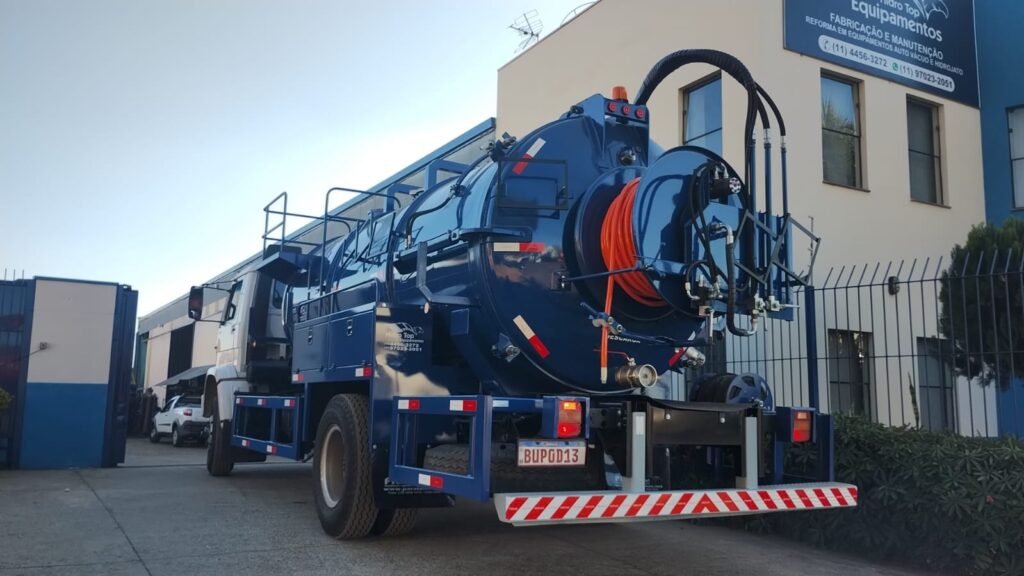 Para realizar o esgotamento de subsolo é necessário contar com um veículo especializado, o caminhão a vácuo, que vai até o local e realiza a drenagem da água.